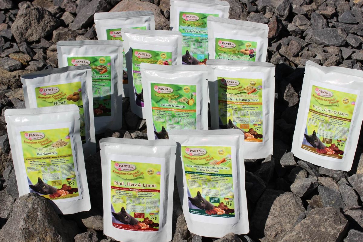 Alle PANYS Menüs im Pouchbeutel gibt es in 95 g und 295 g und sind als Alleinfuttermittel für ausgewachsene  Katzen zugelassen. Mit wenigstens 60,0 % Fleischanteil und ohne Zuckerzusatz, sind es ernährungsphysiologisch ausgewogene Rezepturen.