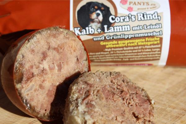 Dieses Gericht mit Leinöl und Grünlippmuschel ist für alle ausgewachsenen Hunde als Alleinnahrung geeignet und wurde in Deutschland nach Lebensmittelstandard hergestellt. Natürlich haben wir auch hier auf zugesetzte künstliche Aroma- und Farbstoffe verzichtet. Auch vielen Welpen schmecken die PANYS Würste, deshalb können Sie Ihrem Welpen im Alter ab 3 Mon. die PANYS Wurst füttern. Hierbei ist zu beachten, dass Welpen während des Wachstums noch einen erhöhten Bedarf an Kohlenhydraten haben. Aus diesem Grund sollten Sie Welpentrockenfutter (ca. 50 %) zufüttern.